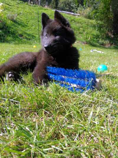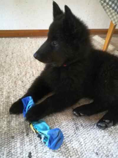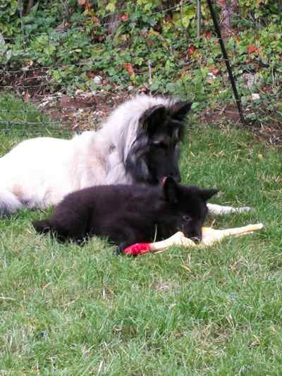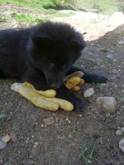 Sie verteidigt schon vehement ihr Futter. Bei ihren Geschwistern war es gar kein Problem, aber als der kleine Labrador etwas von ihrem Hüttenkäse abhaben wollte, hat sie ihm mal gehörig den Kopf gewaschen.