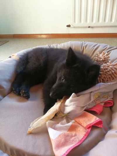 „Charly klaut alles was sie findet und trägt es in ihr Hundebett im Wohnzimmer wie der kleine Rabe Socke. Die ist echt so ein knuffiges Mäuschen. Am liebsten schläft sie in der Küche